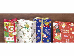 【商品説明】可愛いサンタとプレゼント柄で、赤いリボンはクリスマスギフト全般に合わせられます。